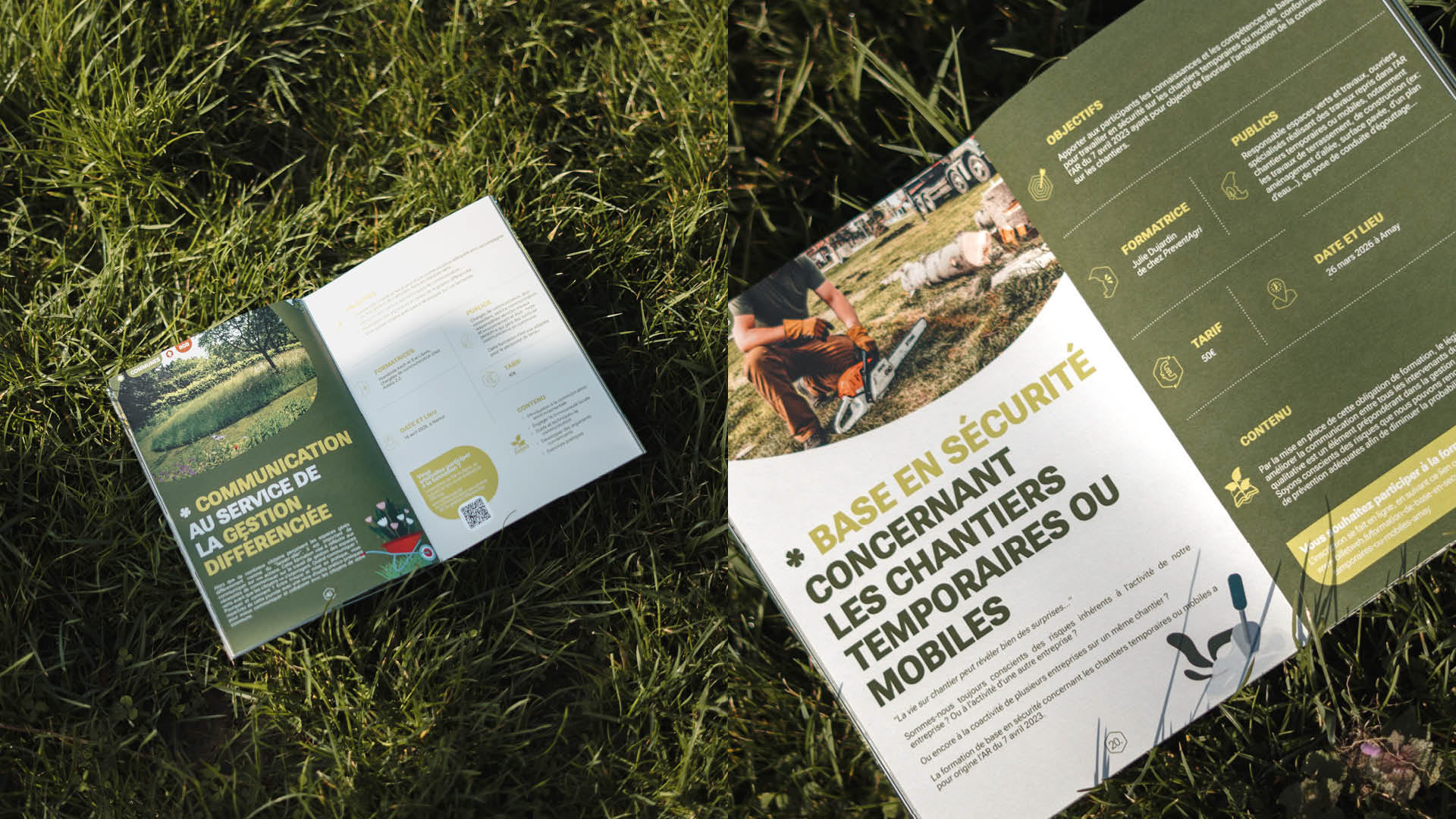 Des couleurs vives, associées à chaque mission : vert pour la nature, jaune pour la sensibilisation, bleu pour l’expertise…