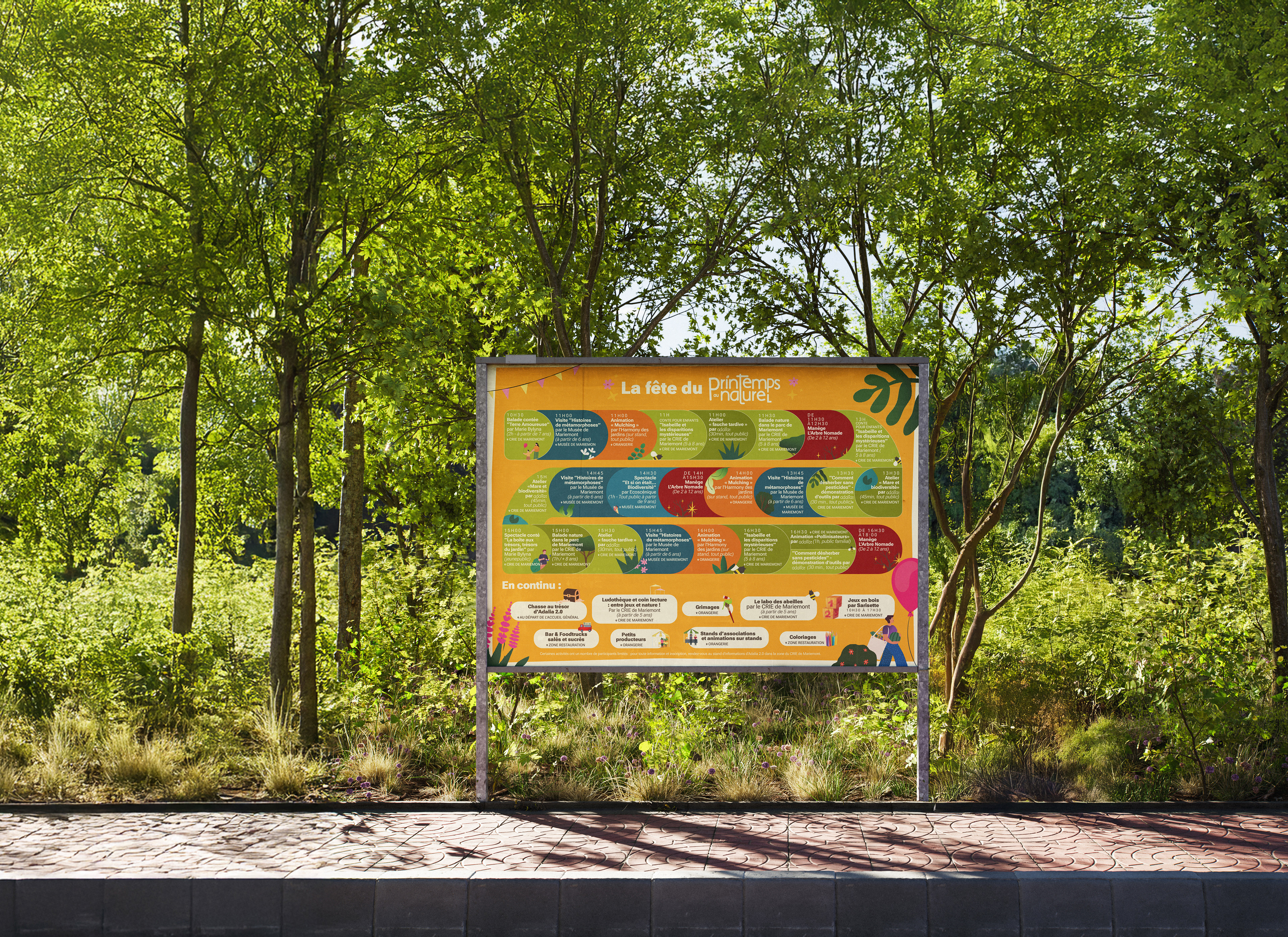 Une typographie accueillante : Des fontes arrondies et modernes qui soulignent la convivialité des ateliers, bourses aux plantes et balades organisées durant l'événement.
